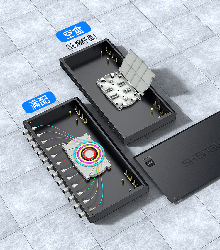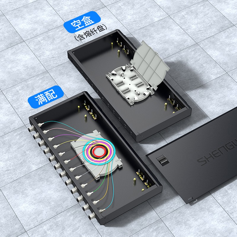 加厚加強冷軋板材質, 抗壓耐沖擊持久使用不變形, 承重力強。采用黑色環(huán)氧靜電噴塑烤漆工藝, 高度耐磨耐腐蝕不沾指紋, 質感好。采用低損配件, 減少信號傳輸損耗;卡扣和螺絲采用內凹設計, 堆疊平穩(wěn), 節(jié)省空間;安裝快捷,掛孔設計;熔接盤內部結構堅固緊密, 安裝光纜/光纖條理分配盤纖與固定, 有效保護光纖不受損傷以及控制彎曲半徑保證信號穩(wěn)定傳輸。